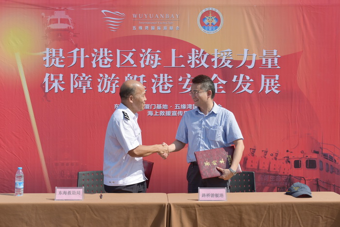 6月26日,路橋游艇港公司與東海救助局廈門基地在五緣灣游艇碼頭舉行海上安全聯(lián)合演練。東海救助局廈門基地主任蔡倫和路橋游艇港公司總經(jīng)理江志勇作為雙方代表,現(xiàn)場(chǎng)簽訂了《應(yīng)急保障服務(wù)合作備忘錄》。