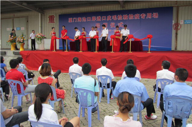 廈門(mén)海滄保稅港區(qū)的進(jìn)口皮毛檢驗(yàn)檢疫專(zhuān)用場(chǎng)于6月在路橋國(guó)貿(mào)公司海滄保稅物流中心正式啟用,這也是福建省首個(gè)專(zhuān)門(mén)用于進(jìn)口皮毛檢驗(yàn)檢疫的查驗(yàn)場(chǎng)。廈門(mén)出入境檢驗(yàn)檢疫局海滄分局、職能管理處等相關(guān)領(lǐng)導(dǎo)、路橋國(guó)貿(mào)公司副總經(jīng)理陳惠平及保稅物流中心全體員工參加了此次啟用慶典。