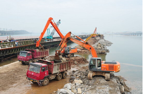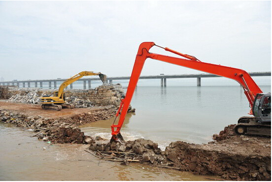 2012年7月18日,由路橋集團(tuán)承擔(dān)的高集海堤開口改造工程順利實(shí)現(xiàn)了東西海域水流交匯貫通。上午10點(diǎn)40分,一臺(tái)特別訂制的具有16米長(zhǎng)機(jī)械臂的挖掘機(jī),將高集海堤一點(diǎn)點(diǎn)的挖開,廈門東海域的海水借助漲潮時(shí)的強(qiáng)大推力,迅速向西海域涌去,從這一重要的時(shí)刻開始,東西海域的海水,又將在潮漲潮落間自由流動(dòng)。